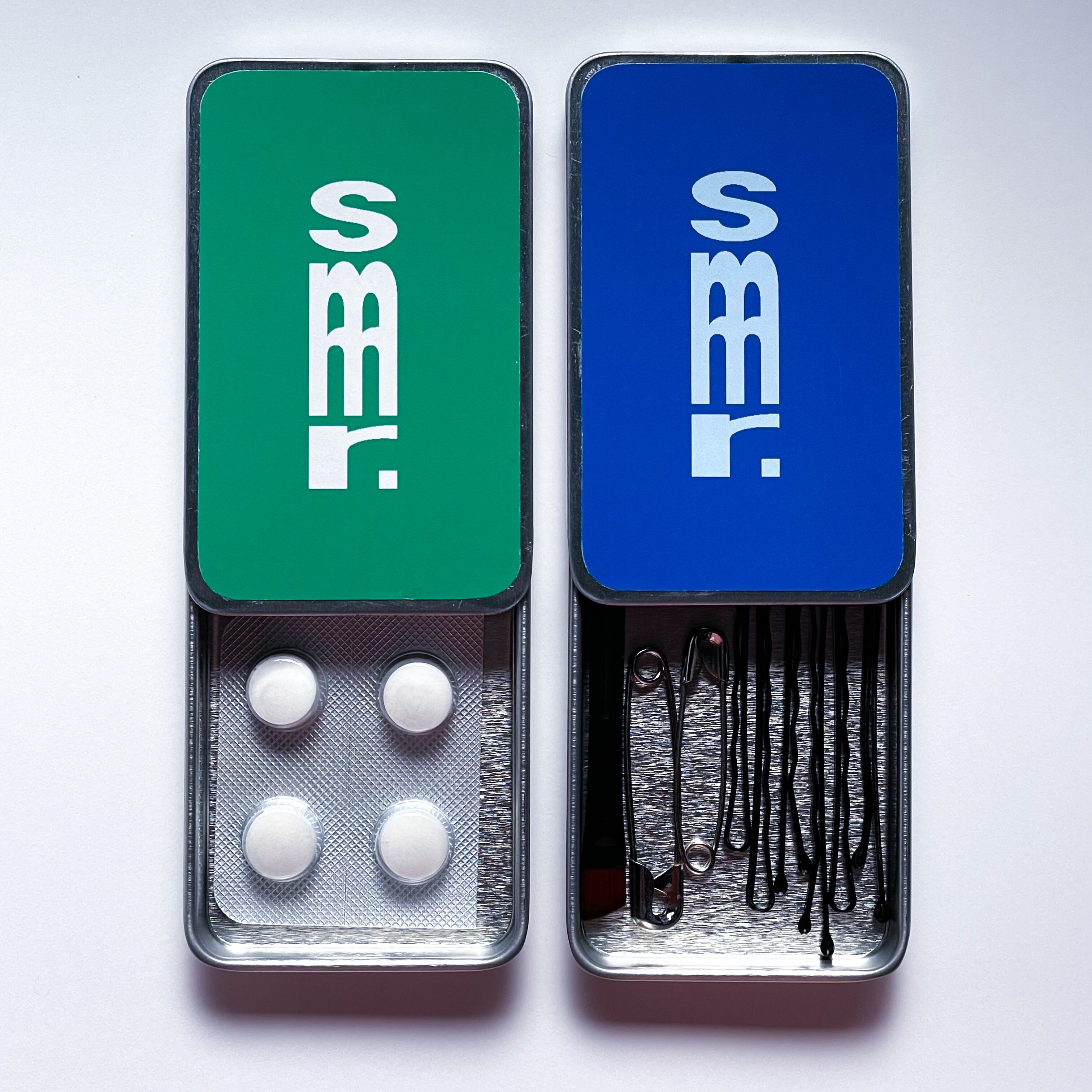 smmr.ロゴをあしらったシンプルなデザインで、アクセサリーや薬、ピンなどの小物をまとめて持ち歩けます。